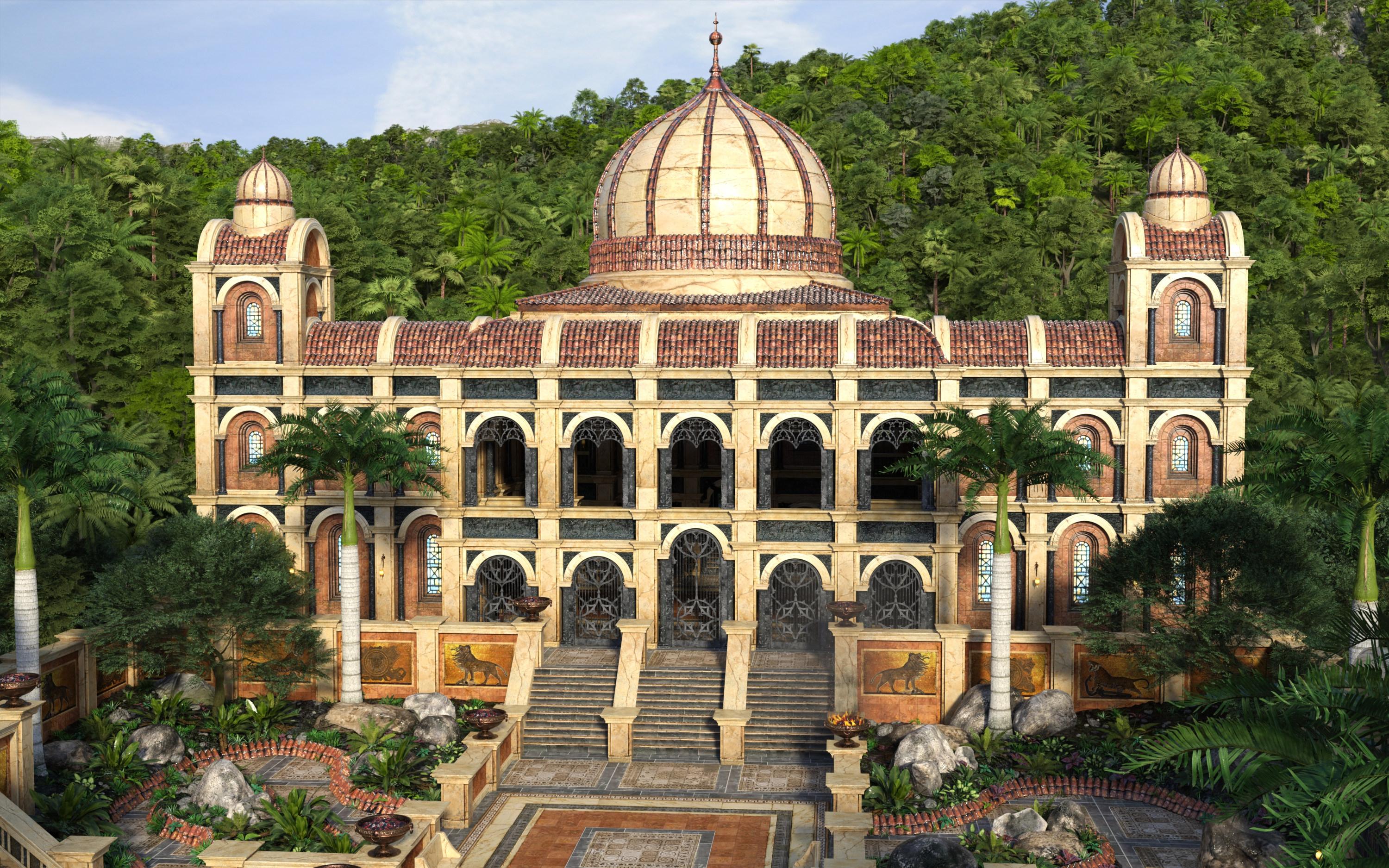 Here are the first fruits of my experiments with the hall, courtyard and UltrasceneryXT, with the tropics add-on.