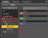 You meant: Select the 'body part' from the 'Dropdown List' in Posing pane? If you don't wanna 'Rotation' to be selected (that's the default), just select 'All' or 'Transforms', etc.