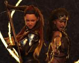 "...and with a swift strike (Kyah!), the beautiful amazon Ally slew the last of the stinky winky space goblins, a feat possible only thanks to sir Karr D'Board's (Woof!) perfectly executed distraction.