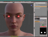 I assign the iris mask to the Emission Color slot for the eyes, and then select a bright blue color (just for testing so far).