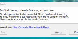 Thank you will keep that in mind, it is a weird thing I can change features say about 3 or so times and no issue. But if I change again then yeah Studio decides to throw a wobbly and crash, it does make me wonder if as you said Daz Studio can't handle so many changes so often. But other than that I do love USC2 just found not to go too large with the scenes. As even with my new beast of a computer it struggles, I did a scene that I had extended to 256 and it took about 4 minutes before it even started to render.