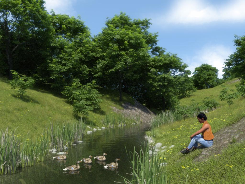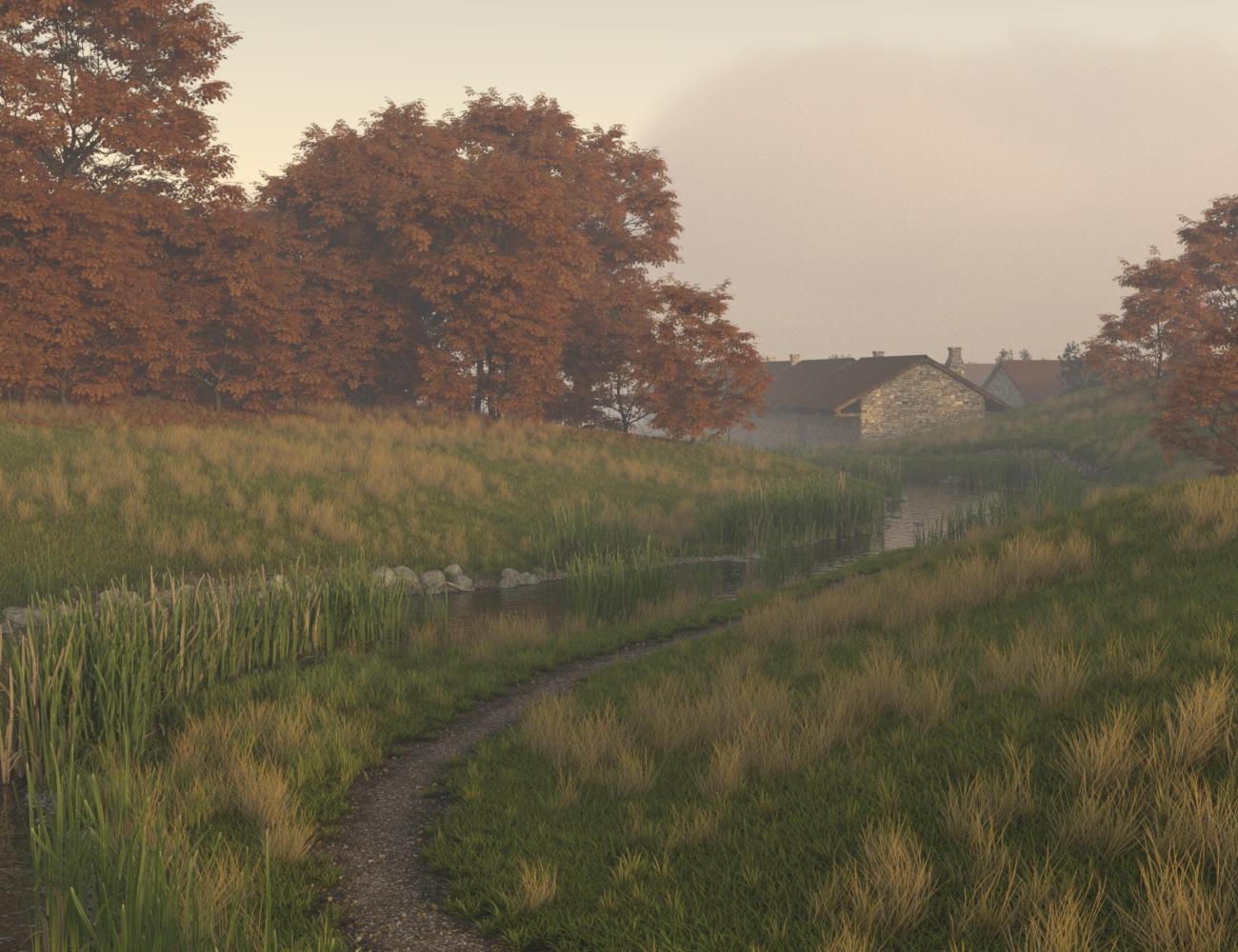 Last night was my first chance to try out USC2 and the experience is mostly positive. The picture above uses USC2 Feature River03 and Ecosystem Oaks05. The culling and the viewport preview are great for getting close to what I wanted.