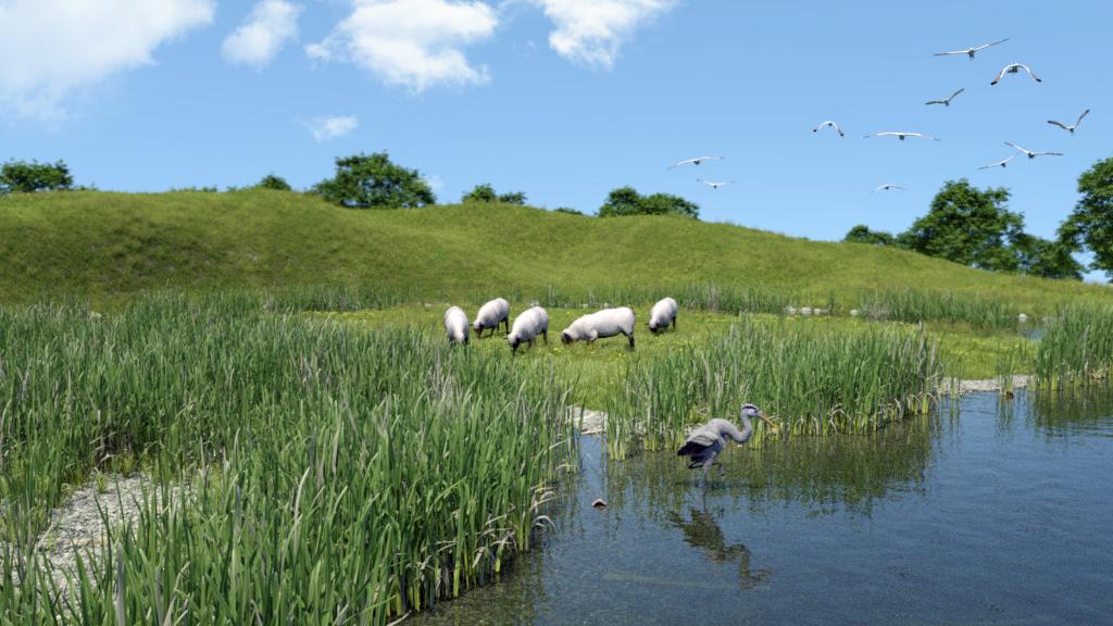 I scattered the yellow irises in this one by taking the river heightmap for USC2 and drawing a black band down the middle of the river so they would mostly land near the banks. I didn't get it quite how I wanted but it was just a test for the moment.