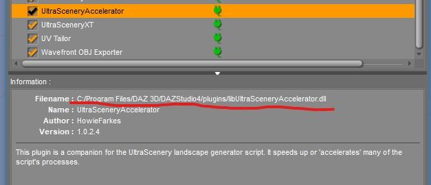 (1) For some reason, I hadn’t reinstalled Accelerator for UltraScenery for Daz Studio 4.5+ (Win 64-bit). I’ve just put it in, though, added to Accelerator for UltraScenery. Pic shows how it looks in plugins menu now.