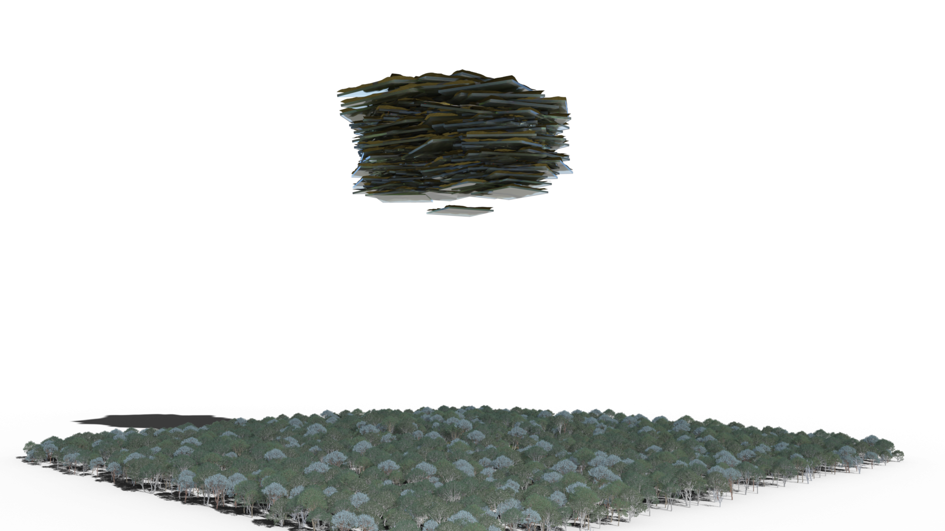 well I can guess what it is from rendering a far off shot, a pile of instanced terrains that should be under the outer trees