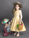 Icecrmn -  I think I agree with whoever said the light coming from the window is too bright for a night scene.  If she is going to hold a candle, the room needs to be darker.  I like the pose idea that DollyGirl posted, but if you use it, I would bend the elbow of the arm holding the candle.  No one is going to hold a candle with their arm perfectly straight out like that.  Even when a person holds out their arm straight, there is still a tendency to keep a slight bend in the elbow.