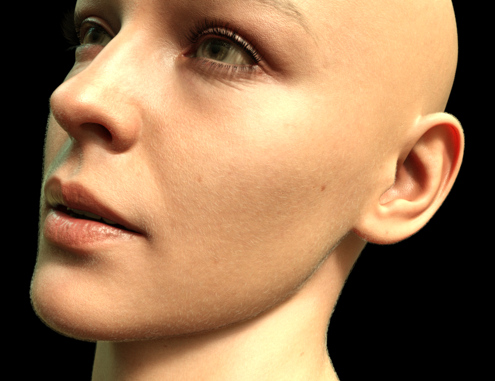 What started out as just porting over the original Vellus Horizon shader system to Genesis 9, turned into an entirely new product with all new maps that work in a different way, so I thought I'd give it its very own post. Like the original Vellus Horizon, this product uses alpha maps on a geoshell to simulate vellus hair, but this new version goes sooooo much further, down to simulating the individual hairs themselves, allowing new avenues of control, and rendering much faster than the old version. Plus, it will load as a simple wearable with one-click material presets. This is still a work in progress, but I'm very close to wrapping it all up. I could babble on about how it all works forever, but instead of that, here's some pictures from my tests to rub on your eyeballs: