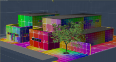 It's very quickly apparent that the UVs for the long walls on this model are stretched in the Z axis . . .