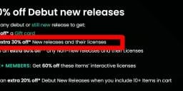 One doesn't get the "PLUS an extra 50% off¥* any Non-new releases and their Licenses" either.