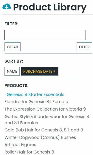 Some weirdness in my Product Library; according to the list, my newest item is Genesis 9 Starter Essentials, I thought there might have been an update, but nothing in DIM. Then I noticed there is now a leading space in the product name...