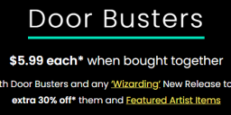 Sale page and banner are not coherent. Sale page says "$5.99 each* when bought together. Buy both Door Busters and any ‘Wizarding’ New Release to get an extra 30% off* them and Featured Artist Items"