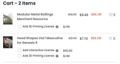 The promotion seems to work despite the eligible new products not being visible on the promotion page. Here is a test cart, with a new non DO product showing the 50 % discount offered to Daz+ members, and a non DO featured product showing the 65 % discount (it also works with DOs, but I didn't want to do the maths to check if the proper discount is applied):