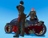 The only downside of upgrading to decals is that as the mesh deforms following a pose, the decal symbols and text also warp. This only reinforces the impression that the "armor" is closer to cloth than it is to any hard surface. A lot of the cyberpunk refernce images suggest torso protections that's rigid, something projectiles or a determined bite from the Big Bald Wolf wouldn't get past. On the other hand, one could argue that in the fictional high tech future, material advances make uber flexible armore feasible. I couldn't imagine the mother of anime cyberpunk, Maj. Motoko Kusanagi, making her killer moves without this degree of freedom!