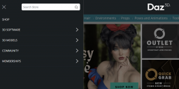 Ok now the hamburger icon on the left side of the DAZ store page is working properly. I DO like it better than a list if items across the top that were TOO repsonsive to my mouse travelling over them to a link on the page. The DAZ 3D center logo looks nice and clean.