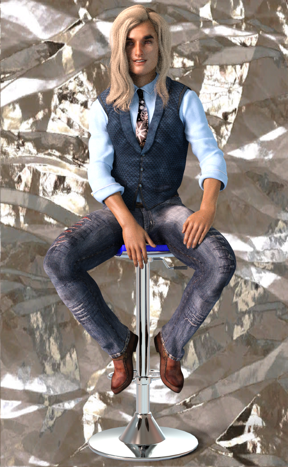 One more tip, see if you can tilt his right knee down a little for a more relaxed look.  You might need to adjust the posing limits to do it.