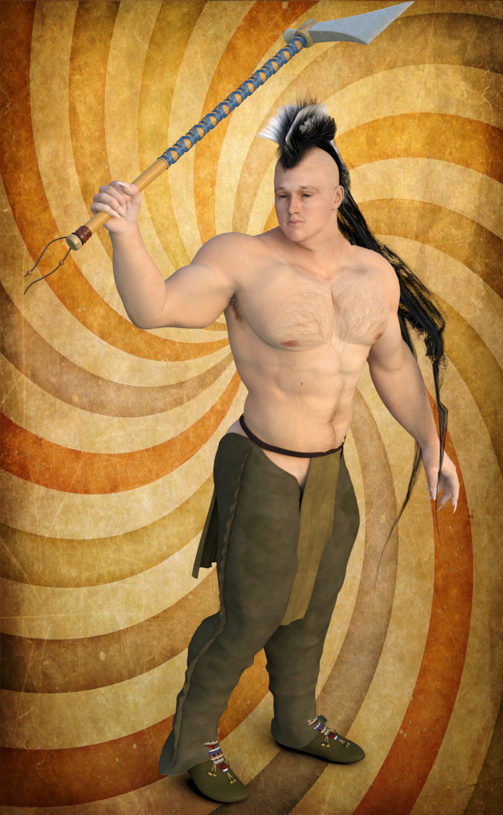 I like that background! Real old-time circus or travelling carny feel to it... btw we actually have one of those tomahawk weapons in my family. I'm not sure of its provenance but generally speaking, you want a lot of dirt and rust... think "Parkside Freight textures" here. There are also Iray shaders, like by Jen Greenlees, that do "old metal" quite well.