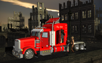 That render is looking pretty good.  I like the background and the oddity of the story.  Like, what's a guy with a beautiful truck like that doing in the middle of a ruined city... and where the HECK did that gorilla come from???!  Pretty funny.