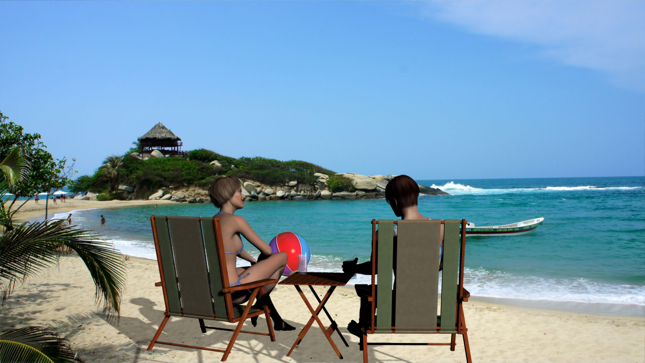 Nice place I'd like to be there now, but the shadows are somewhat moved from the place they should start... makes me dizzi