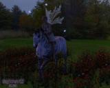 Add a little more light on the centaur - either use a spotlight or a linear point light near her.  Use the color picker to make the light a very pale yellow - warm light will bring her out of the background.