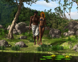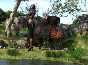 Ooh, that's nice! :D I love the addition of the little doggo. The lighting is very good. The only thing I have to nitpick on is that the guy's pose looks extremely uncomfortable. He looks like he should be sitting on something, so see if you've got a prop you could add to the scene, like a stone or a tree stump or log. I think he'd be very grateful!