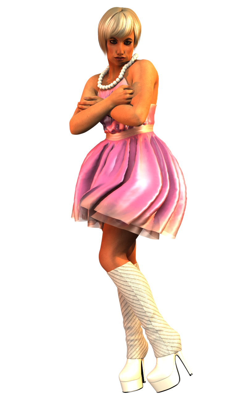 A technique I need to work on. Her figure is fine, as for her boots, use some specular in surfaces tab, which will give boots highlight, start with white at 100%, move slider down to adjust.