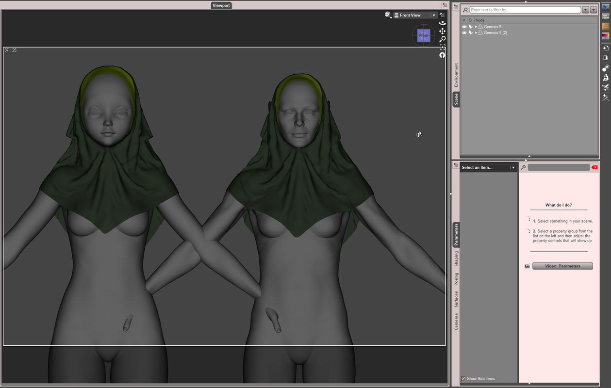 I think there's a reason why most hijab in DAZ only from neck above, none is really long one like mine. They avoid the problem I have.