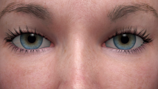 For G1, the corneas tend to load with the alpha channel turned off. Turn it back on, and change the cornea multichannel shader to glass, the same as above. Also apply the HDR or glowing object in the scene.