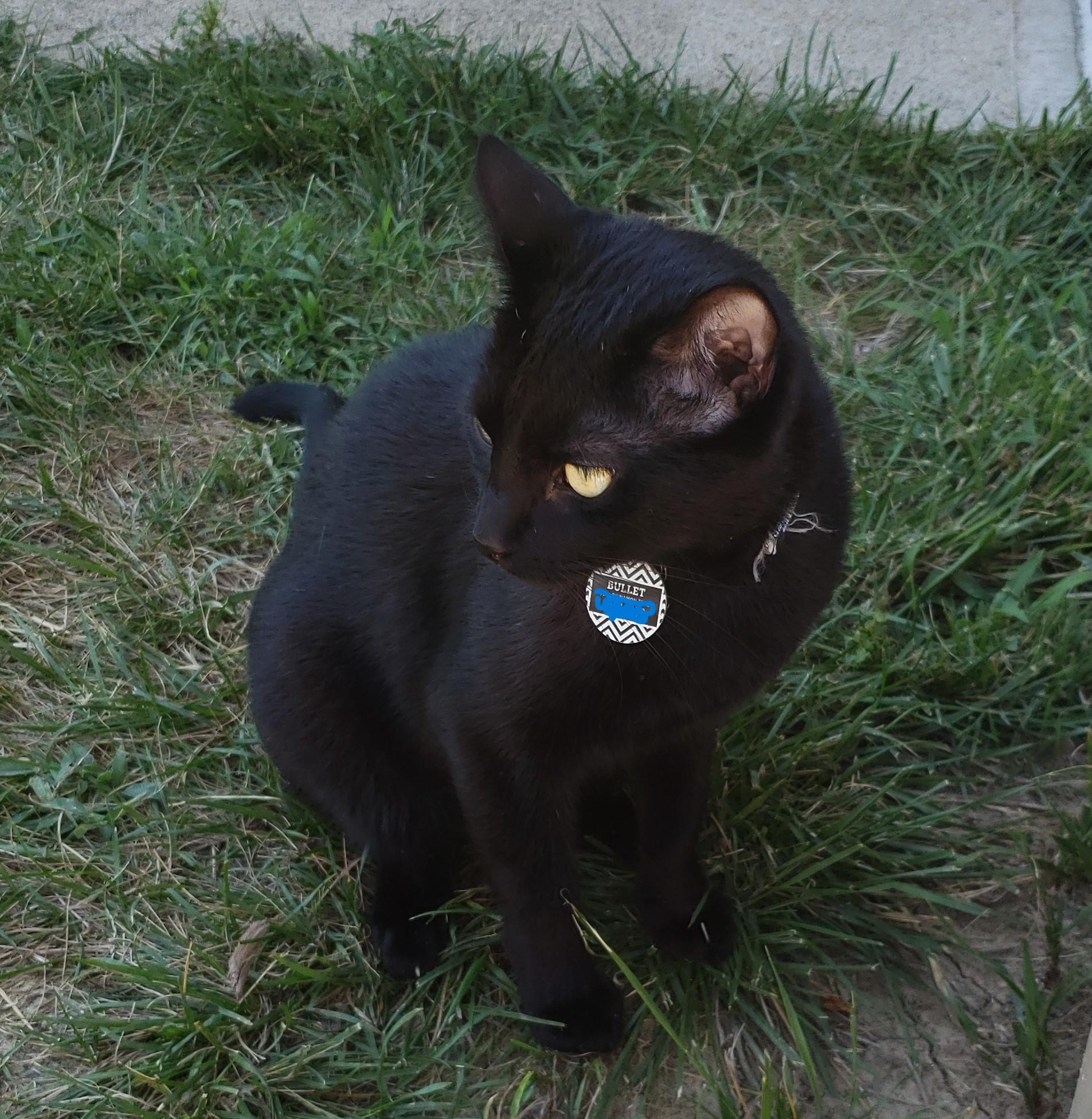 Complaint: I love my Bullet. Sometimes, he gets caught up in the hunt, being a feral kitten when my wife and I adopted him. So he chased a squirrel. Over in the neighbor's yard just to one side of our lawn. Never goes any further than that. So I call him, and he doesn't respond; I go to get him, and he hisses, so I snap my fingers, which brings his attention, and he runs to our porch. Not this time, hisses again. I snap my fingers again, and he does it again. So I picked him up, and the loudest hiss I ever heard from him came out, and the little punk was purring at the same time.