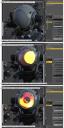 Comments on process are in the image. (Zoom all the way in, it's biggish.) The starting point I used for the custom opacity map was its metallicity surface #2, which was already in b/w and thus required less color tweaking. Don't forget to save your opacity map as a fresh file and not overwrite the one you started from! Then just position a 6-foot sphere primitive in the chamber and surface it as you like. I didn't bother putting in a black wall to hide the engine glow, and a seat and a console, in the second image; I leave that to your imagination.