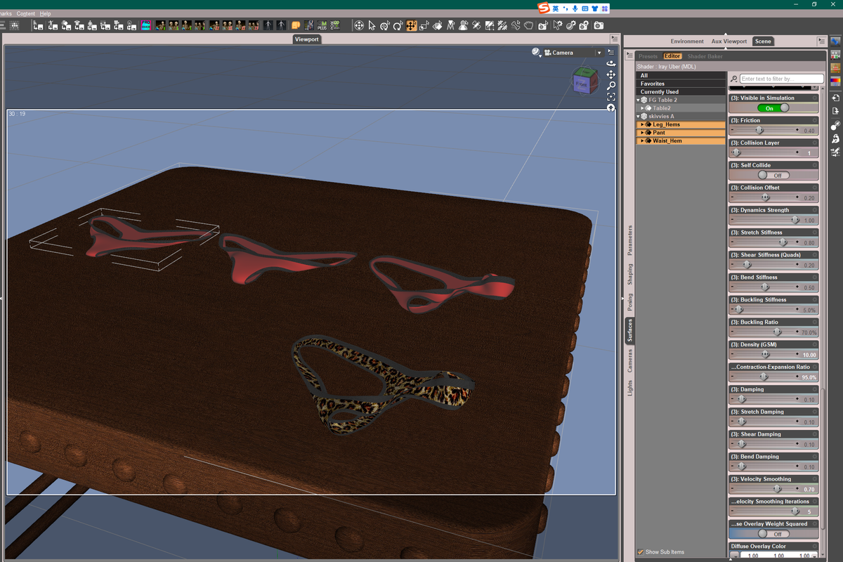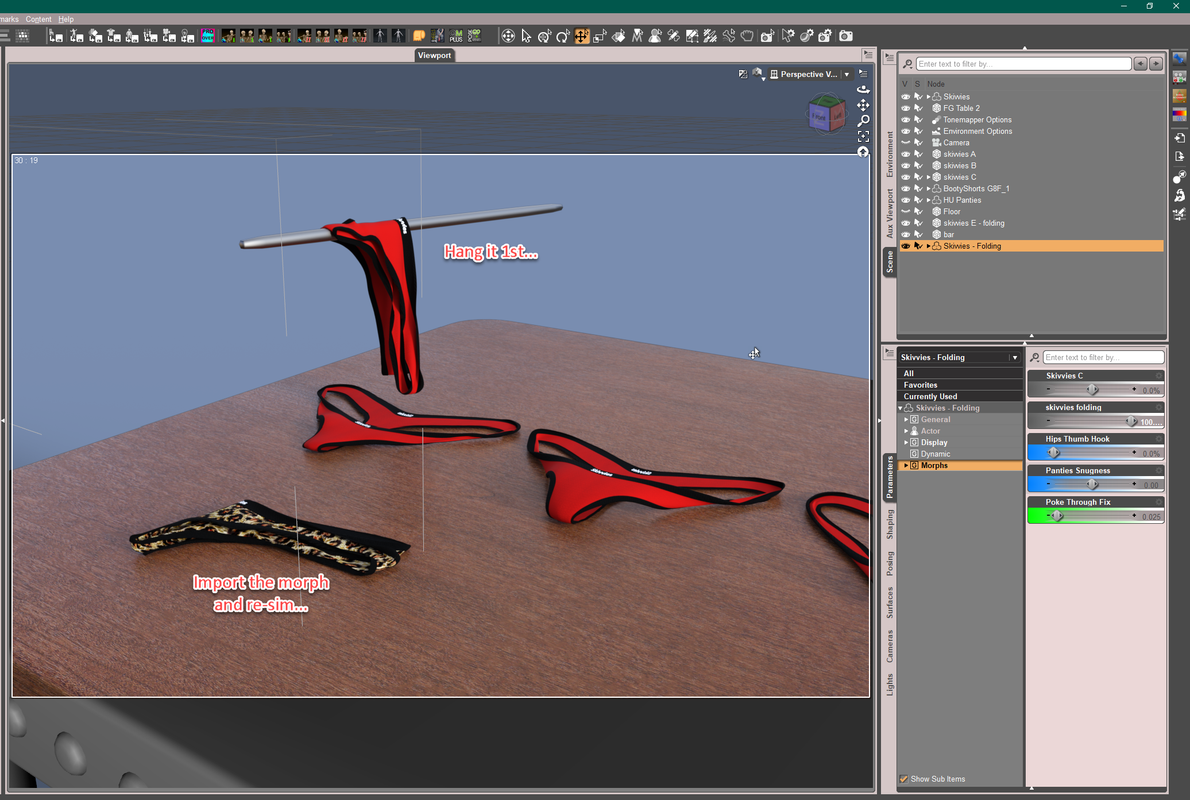 Hi I was using a dforce trick to remove a present dforce and adding a dynamic dforce on the cloth object and it use to work fine but for very limiting clothes. But I am not sure how do I use this method for some other clothes. In the following image I am using a Genesis8 wardrobe underwear but instead of following on the ground it self wrapping itself and looking very wiered at the end of the simulation. Is there is any other method I can use to achieve the same result?