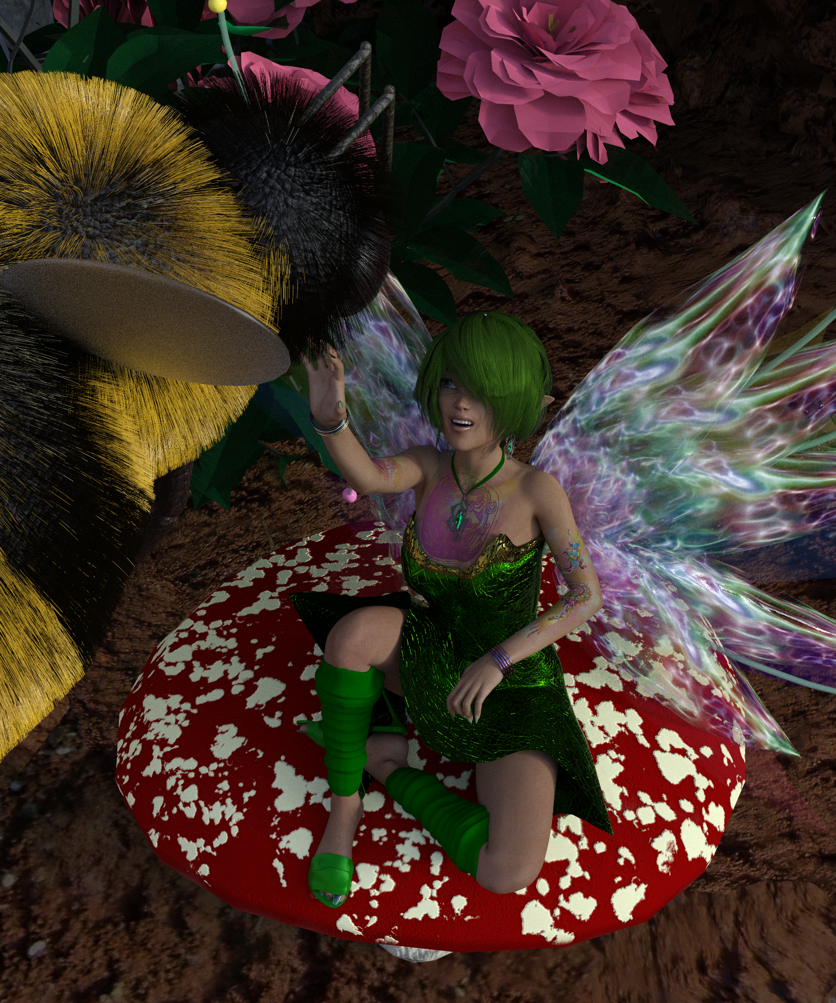 an attached flower from the Flora Sprite Dress (https://www.daz3d.com/flora-sprite-for-genesis-2-female-s)