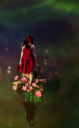 for the test version 2 i rendered a second pic without the bubbles and primitives. and i removed the background flowers. then melted the pics with 2 masking layers and the vintage overlay. Just to get an impression how it would work out at current stage. (needs to be balance though. main reason to do this: i want a bit more of her reflection and her slightly more outstanding - but its already too much atm)