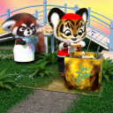 Description: Ping was not pleased when he found out Pounce only volunteered to help with the gardening as an excuse to dig holes all over the yard to look for treasure.