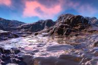 A self made terrain with the somewhat adjusted Tau Variant material by David Brinnen. Sky and ambient light by the ErnieClouds HDRI free on my website and the key light by the sun. Snow and ice are melting.