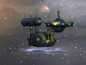hdri sky, star fields (space construction kit)a cloud sphere, moon,1 big sphere with nebula material (space construction kit)space ship by Brian Mathews (share cg)textured in Bryce.