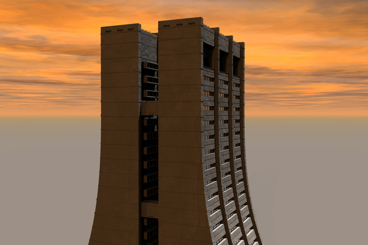 Now I've remembered them and decided to use with Bryce. In that collection there were 12 models of various buildings, at first I tried to take a look at them in Blender. When I tried to load them first time I just got Blender freezing with RAM consumption increasing over the time so I had to shut down process. Second time I've successfully opened them in Blender, but I was greated with RAM comsumption around 7-9 gb and also swop memory consumption around 4-6 gb as well. Obviously, textures were the culprit. So when I went opening those models in Bryce, I decided to import without textures. After some wait, I've managed to import all those models (they were provided inside one file for some reason) and Bryce's RAM consumption ended up being just about 600-700 mb (even without textures you'd see 3,5 million polys in this model kit). After further investigation I understood that those 12 models they provided as limited freebie were more like a "sampler" from their big commercial sets, and so they've included stuff from 4 of such sets, 3 models per each. So in the end I decided to use 3 models that came from same set to test things. As I imported them without textures I had to assign Bryce-native materials. So I've revisited the way how originals looked and spent some time finding more or less fitting replacements from Bryce materials library. Finally, it was time to do some renders.