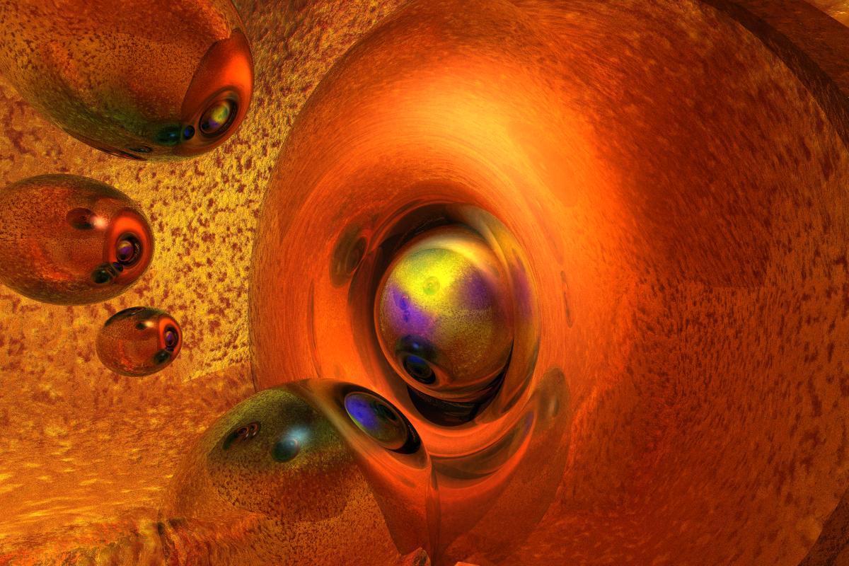 Inspired by mermaid and adbc with their abstracts, I gave it a try, too. The camera is within two cubes with indented faces, the outer one is a bit bigger than the inner one and rotated in all three axes by 45°. Both have the same material, Reflection and Transparency, the Refractions are different, outer 0.75 (75) and inner none (0). Light and colour by the "Rainbow3_LLx2" HDRI (unpublished) from outside but with negative HDRI Effect (light) to enhace the contrast..