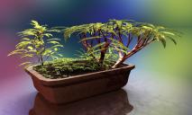 The pot with the earth is from Xfrog. The four plants are Bryce trees from Vegetation, leaf and wood materials modified. The pot stands on a Fading Disk, underneath it is a semitransparent mirror. Background and ambient light by an HDRI from Hyper Textures Base, additional light and some specular by the sun.
