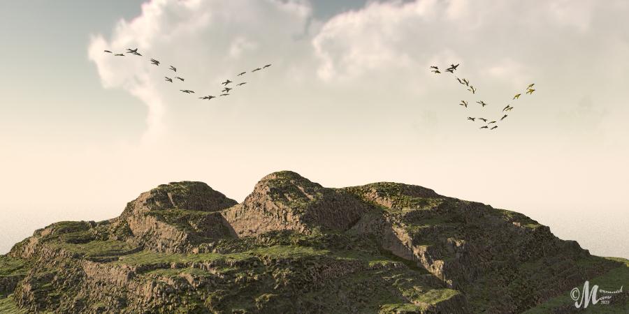 Inspired by Horo’s use of the Red Filter, I used it for this render, the terrain is from HRT-2 and material and lighting from HRT-1, the birds are a freebies.
