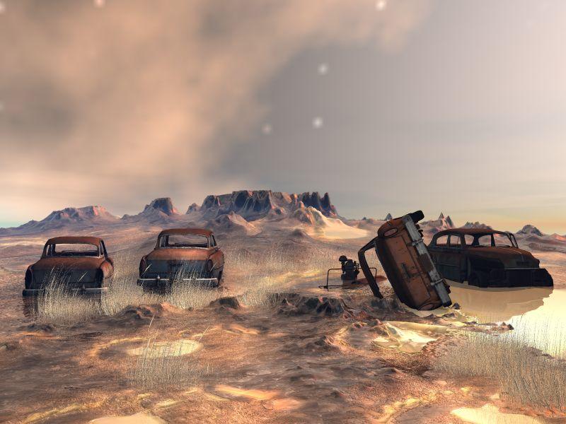 2 Bryce terrains, grass, abandoned cars : Sketchfab by Renafox.