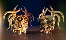 The object at left is from Alien Artifacts Vol1 by MatCreator and at right a turned instance, both with my own material. They stand on a Fading Disk. Background, light and colour by an HDRI from Hyper Textures Base. Both sides, front and back, of an alien artifact.