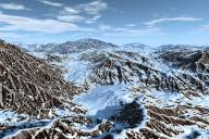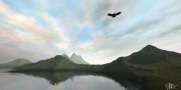 The terrain was self made and given a material from Grand Mountains. Blueish ambient light by an unpublished HDRI. The clouds are Cumulus from the Sky Lab, the key light by the sun.