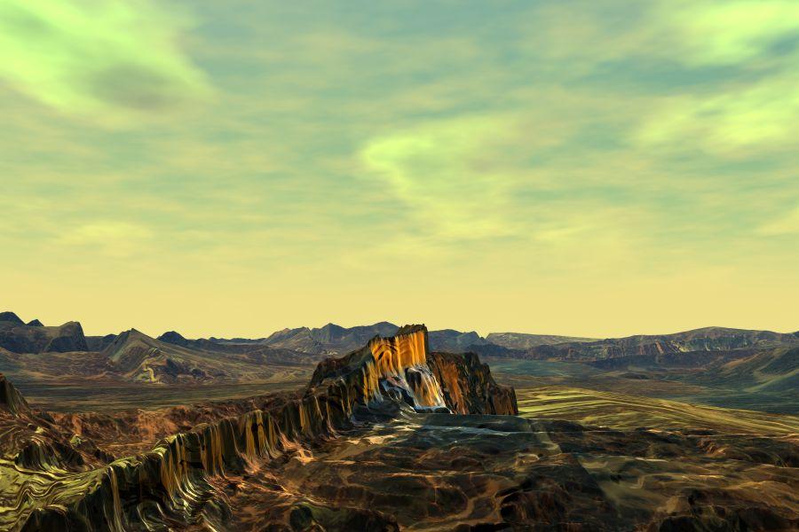 adbc, your landscapes have a lovely surreal look sometimes.  This one has the swirls in the ground material and the sky adds to that.  I could see spaceships landing here.  Great job.