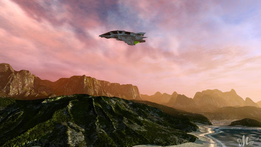 Bunyip02 - thank you. The Spacehunter is by mermaid and I agree it is a excellent render. The Ravines in the Hills is indeed by me.