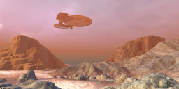 The terrains are from RajRaja’s Bryce Atmo, with some modified materials, the Hdri from Hi-Res 2 and the space ship is a freebie from ex -ShareCG