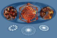 The object in the centre is a Strange Object by Steven Ray, both left and right and above the screen were made in Wings3D. All have a special glassy material consisting of a positive and a negative Hypertexture. Specular from the WhiteSphereB7 HDRI and from the sun in the zenith from which also the light for the shadows comes.