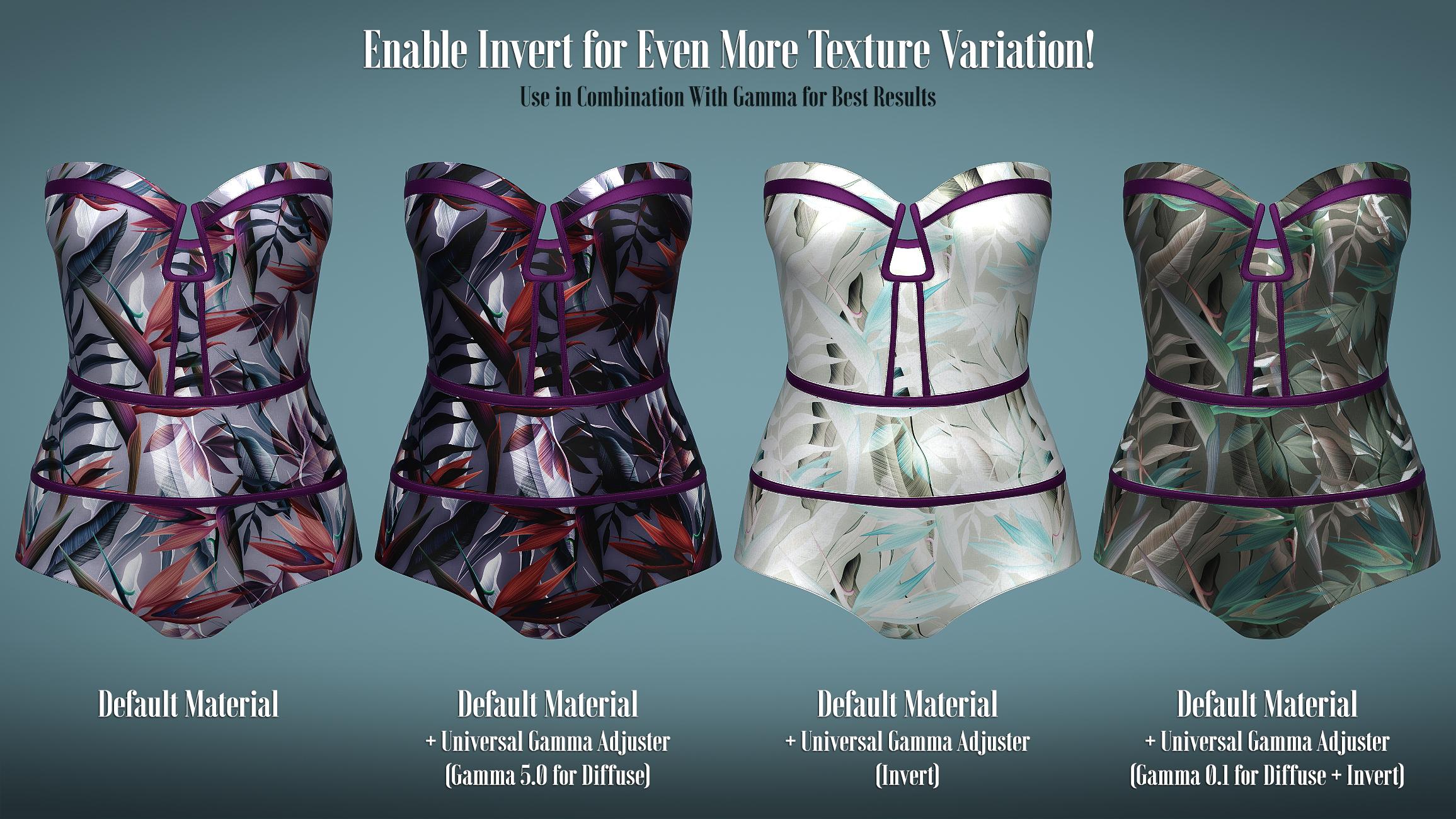 Universal Gamma Adjuster is a handy script dialog that will allow you to change the appearance of Base Color/Diffuse and Translucency Color textures, for any prop or figure, greatly expanding your Iray material options.