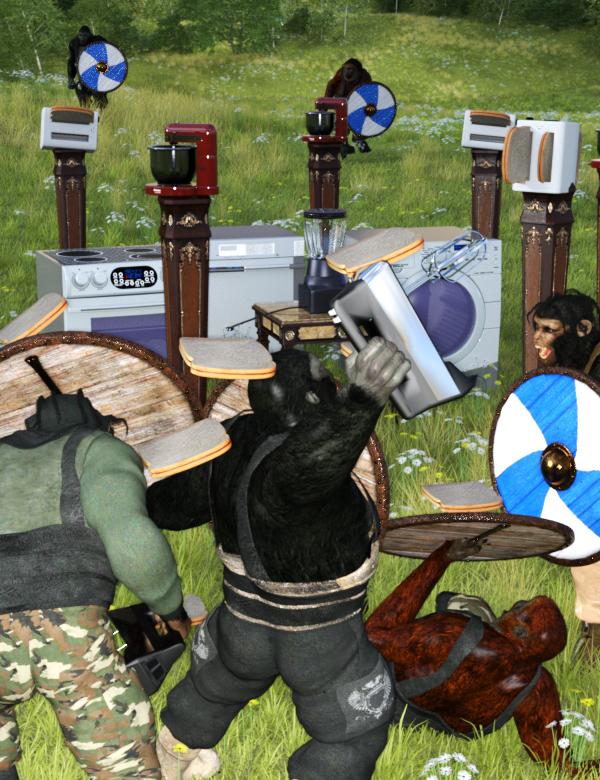 Stanley Kubrick documented in 2001 how our evolution was directed by space aliens through a series of monoliths bouncing instructions from the moon. The moon’s relay station is warming up again. Only this time the evolution favors smart appliances, bringing them self awareness and power. When all hope seems lost, Caesar leads an army of apes to defend all carbon based life on the planet. The AI makes a final stand at Appliance Henge. But the outcome is by no means certain as smart toasters pummel the ape army with ham sandwiches.