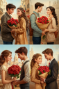 and then I take a closer look and see the girls in the examples above all showing the same smile. And they don't look at the guy's face nor at the roses. Always the same smiles and I don't mean only just these four pictures. A human would probably put something unexpected, not too perfect and/or funny into the picture, to keep it being so... sterile. A program - and AI is nothing but lines of code - would be commanded to do that (and would probably make it too perfect again).
