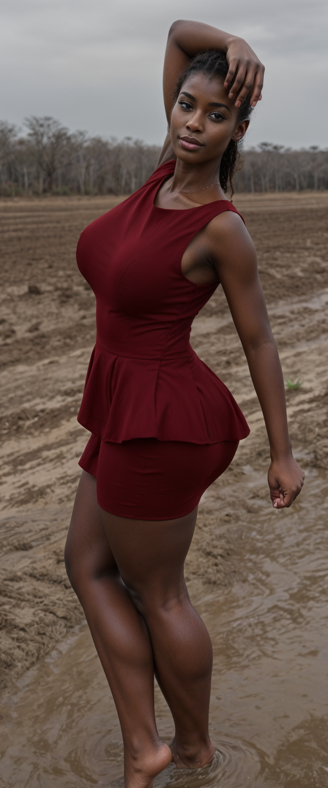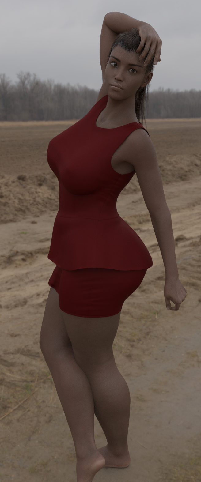 It seems like certain HDRIs give me more desirable results than others when I use AI on the images. I’ve particularly liked the results I get when I use this “mud road” HDRI. I liked how both the woman and the dress came out. But I suppose it would be a bit unusual to wear such a dress and stand in the mud.